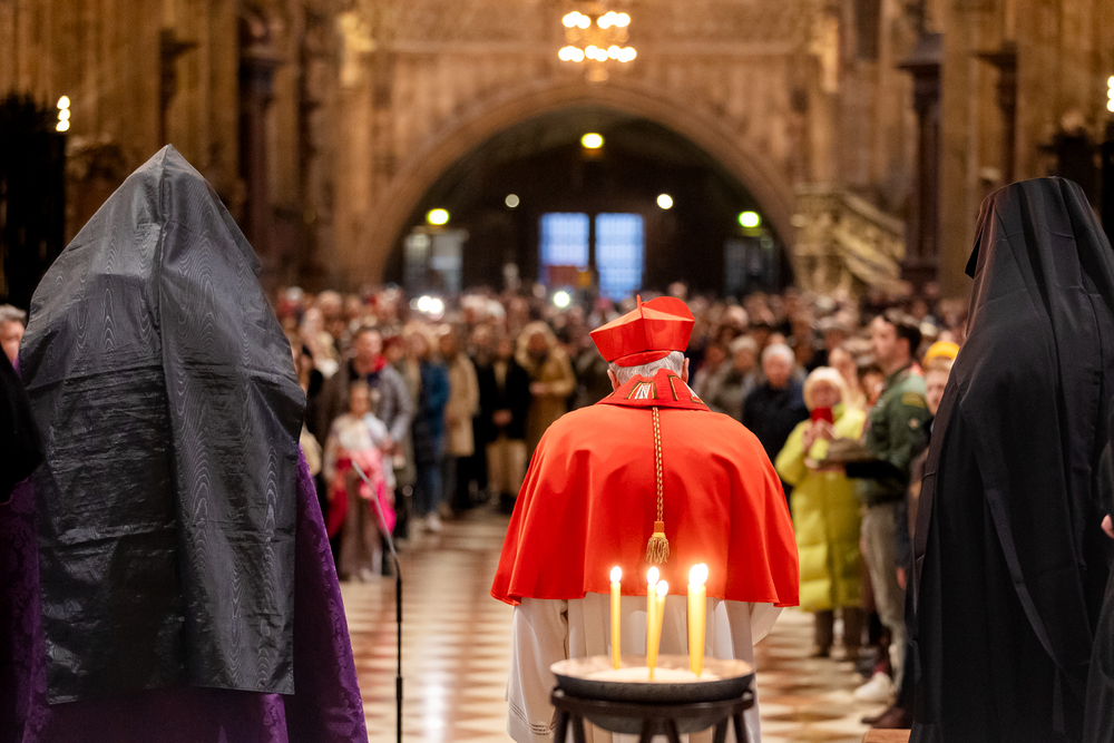 Zum dritten Jahrestag des russischen Angriffs auf die Ukraine fand im Wiener Stephansdom ein ökumenisches Friedensgebet statt, an dem Kardinal Christoph Schönborn teilnahm. Das Gebet wolle "die Stimmen der vielen Leidenden aufgreifen und ein Licht der Hoffnung inmitten der Dunkelheit entzünden. An dem Gottesdienst nahmen neben Kardinal Schönborn auch der päpstliche Gesandte in Österreich, Nuntius Erzbischof Pedro Lopez, der armenisch-apostolische Bischof und Vorsitzende des Ökumenischen Rates der Kirchen in Österreich, Tiran Petrosyan, der griechisch-orthodoxe Metropolit und Vorsitzende der Orthodoxen Bischofskonferenz in Österreich, Arsenios (Kardamakis), der für die ukrainischen Gläubigen in Österreich zuständige orthodoxe Weihbischof Maximos Rudko sowie Chorepiskopus Emanuel Aydin von der Syrisch-Orthodoxen Kirche teil; weiters etwa auch Ostkirchen-Generalvikar Yurij Kolasa, der Wiener Weihbischof Franz Scharl und Domdekan Rudolf Prokschi. Desweiteren erinnerte die Caritas bei einem Lichtermeer aus Tausenden auf dem Wiener Stephansplatz entzündeten Kerzen an das Schicksal der Menschen im Ukrainekrieg.Wir waren mit der Kamera dabei.