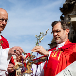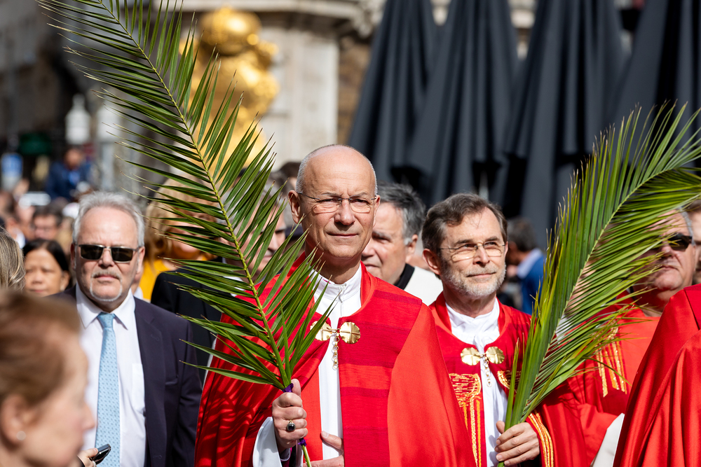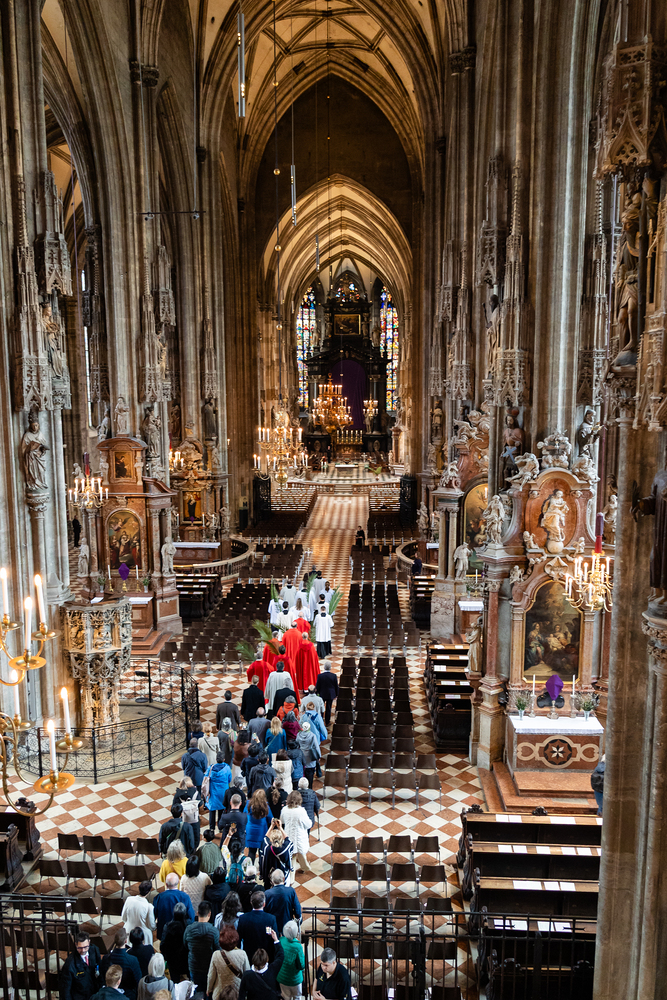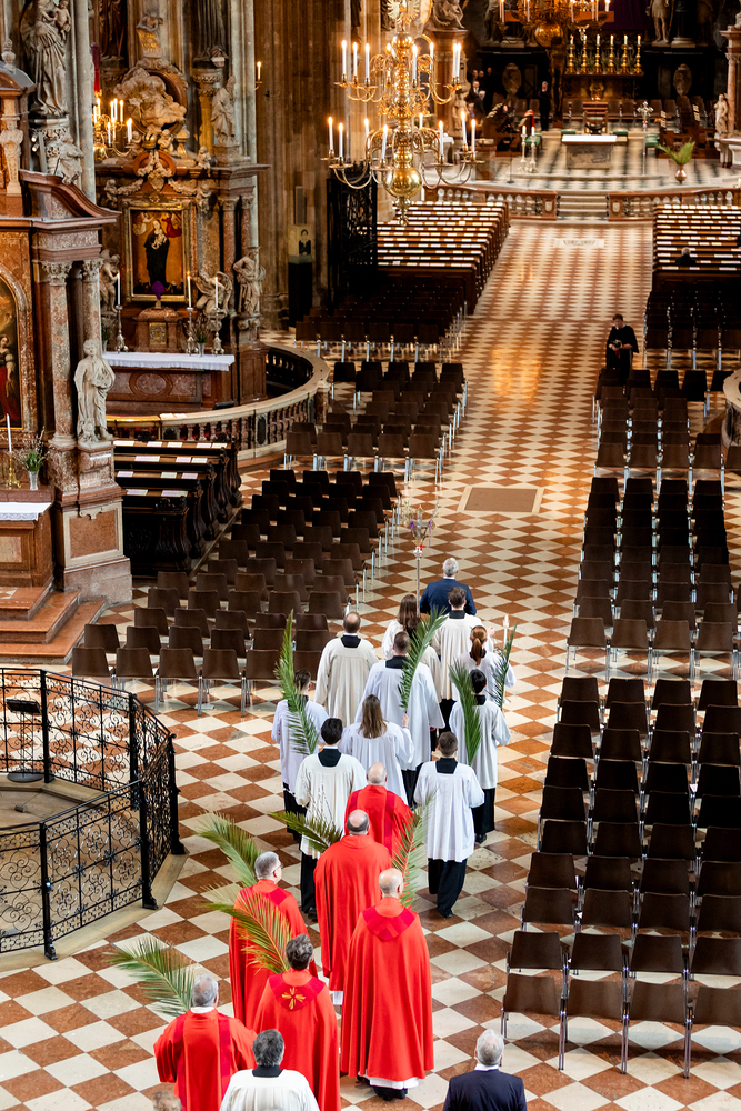 Der Palmsonntag ist ein Tag, der von Freude und Jubel geprägt ist. Er erinnert an Jesu Einzug in Jerusalem, bei dem die Menschen ihm zujubelten und mit Palmzweigen winkten. Jesus wird gleichsam als König gefeiert. Das ist vergleichbar damit, wie heute hohen Persönlichkeiten der rote Teppich ausgerollt wird. Die Palmweihe des Stephansdoms, geleitet vom Apostolischen Administrator Josef Grünwidl, fand bei der Pestsäule am Graben statt. Anschließend zog die Prozession feierlich in den Stephansdom ein. Wir waren mit der Kamera dabei.
