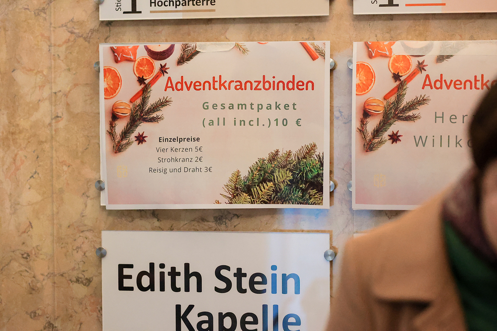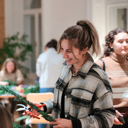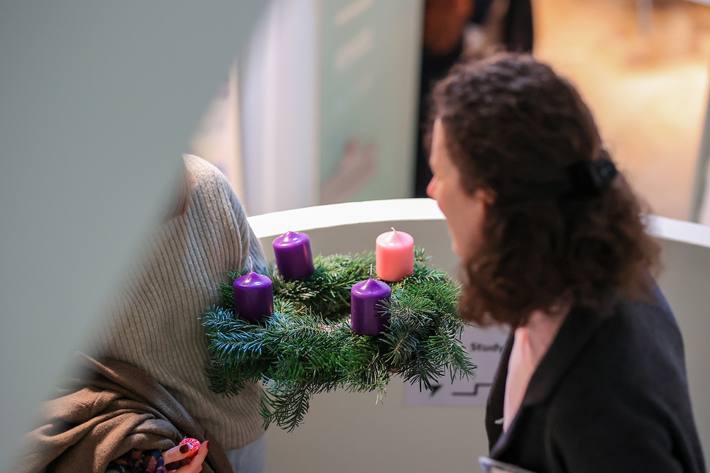 Gefüllt mit Tannenduft und über 160 Studierenden hat in sämtlichen Räumlichkeiten der Katholischen Hochschulgemeinde das beliebte KHG-Adventkranzbinden stattgefunden. Ob kirchenfern oder glaubensbegeistert: bunt durchmischt konnte man plaudern und sich bei Glühwein, Mandarinen und adventlicher Musik auf diese besondere Zeit der Erwartung einstimmen.