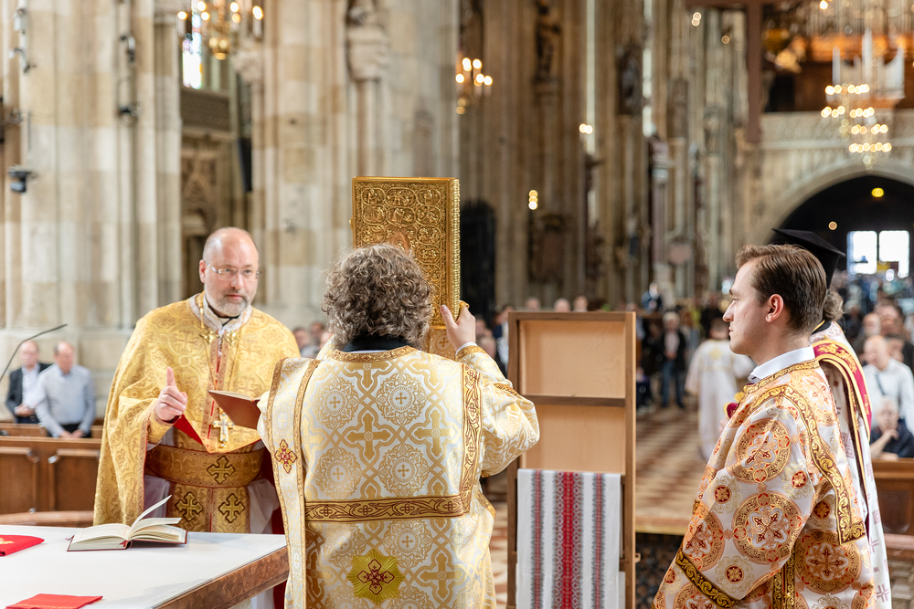 Zum ersten Mal in der Geschichte unserer Erzdiözese wurde ein Seminarist des Wiener Priesterseminars im Byzantinischen Ritus zum Priester geweiht. Bischof Stepan Sus/Kyiv spendete Siluan Gall die Weihe - eine Premiere auch in der 665 jährigen Geschichte unseres Stephansdomes. Wir waren mit der Kamera dabei.